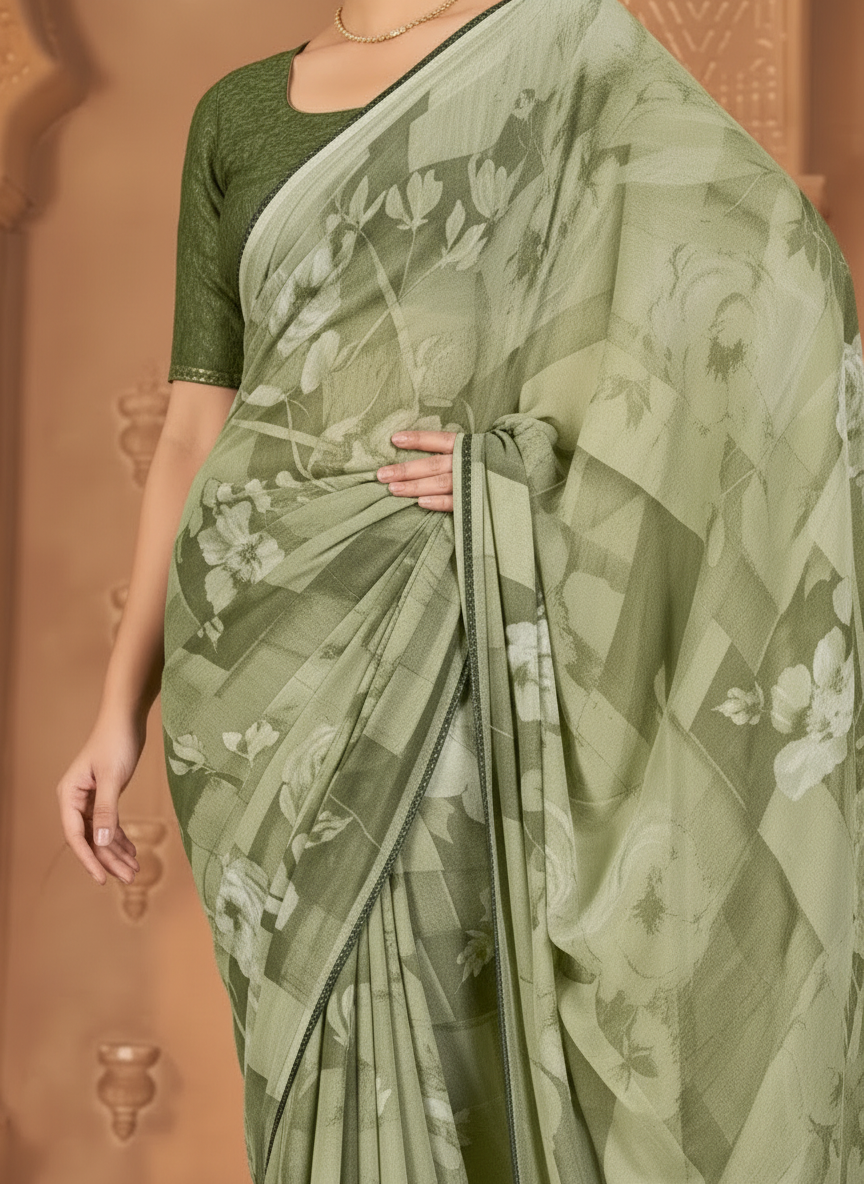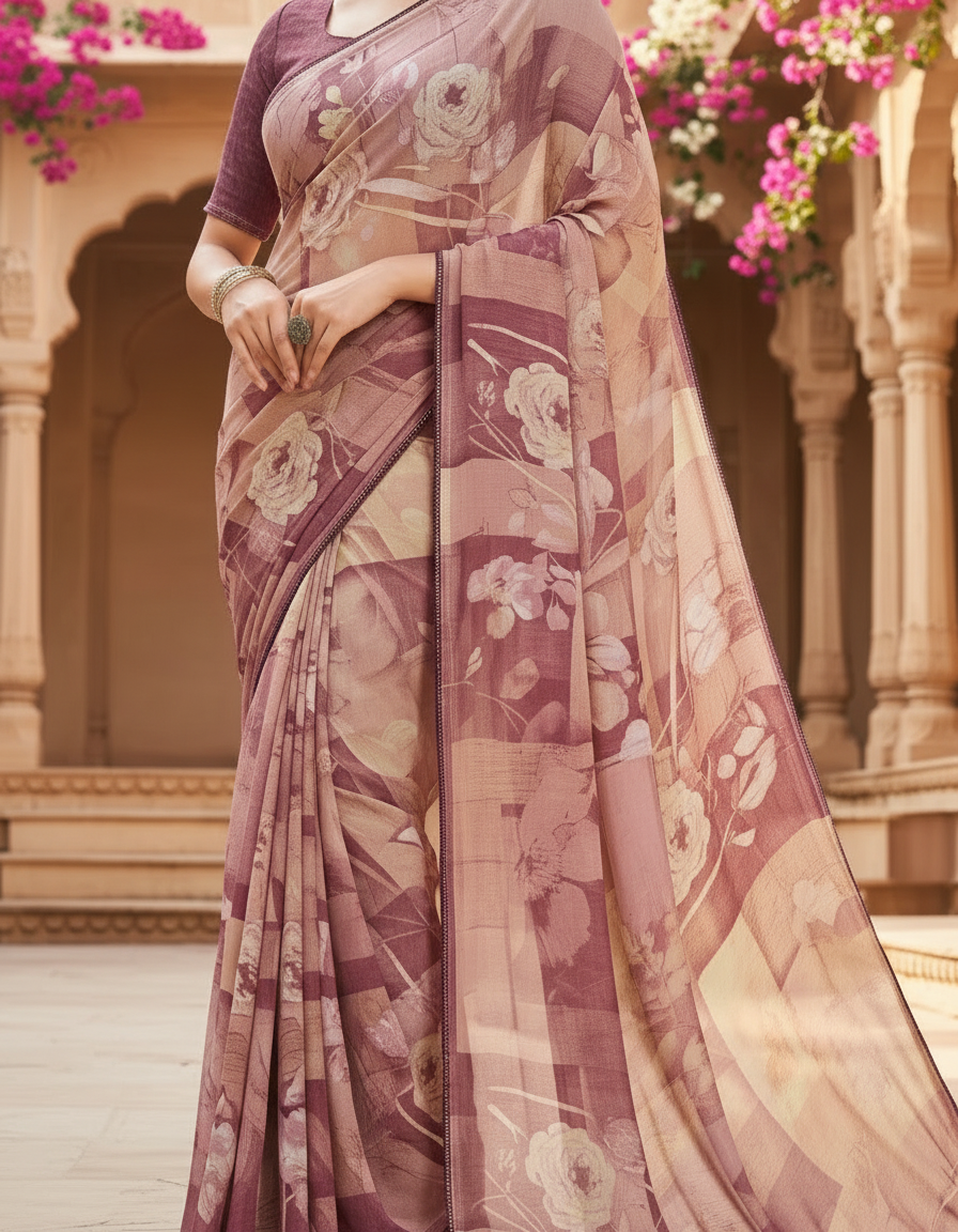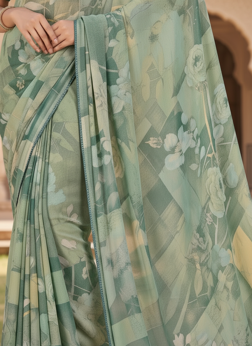 Varnika Soft Georgette Printed Saree – Floral Elegance